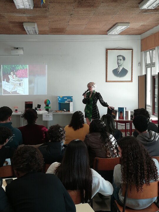 No dia 25 de fevereiro de 2025, realizou-se mais um Encontro com a Autora Patrícia Ribeiro. Esta jovem autora, com uma capacidade de comunicação muito própia, explorou os meandros da ação narrativa da sua obra, “Os Homens Nunca Saberão Nada Disto” e partilhou com os alunos do secundário a sua experiência enquanto jovem escritora. Na apresentação da sua obra, utilizou não só a imagem digital como os temas musicais, referenciados ao longo da narrativa, para que o leitor (...)